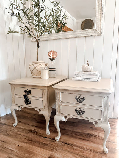 PAIR SIDE TABLES IN A.S. COUNTRY GREY 22 1/2" tall x 21" wide x 27" deep