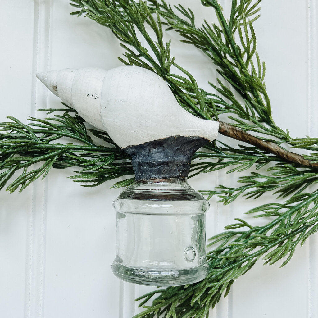 EXTRA -SMALL SOLDERED SHELL INKWELL BOTTLE 4"T x 3.75"W