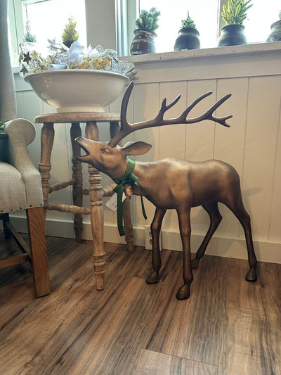 WOOD AND BRASS DEER 9.5"T x 8"W