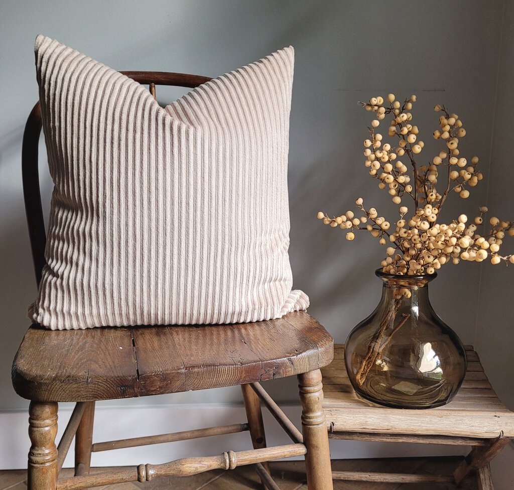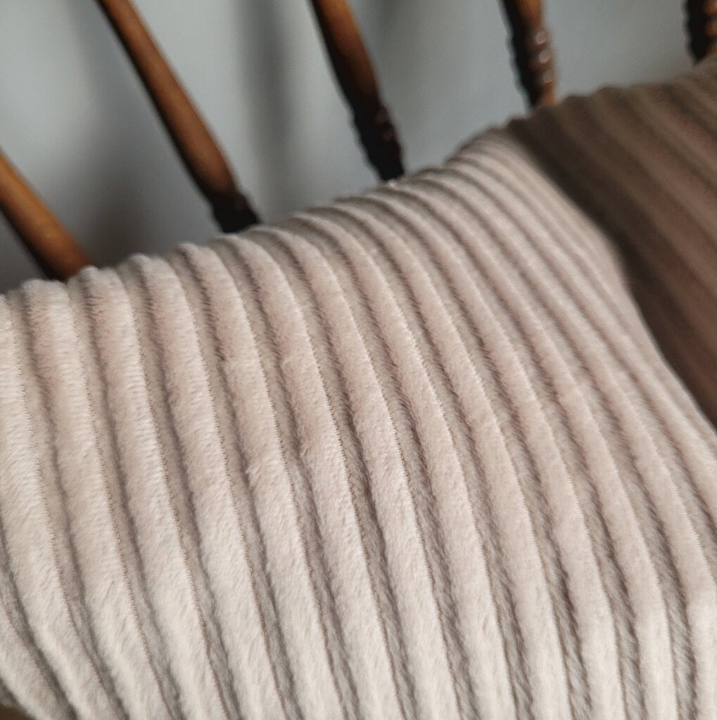 Soft ribbed velvet in a golden tan color, sure to cozy up any spot! Spot clean. Cover measures 18x18, and is fitted with a zipper closure. Add a feather insert to your order for a pillow all ready to go! If you do not see the configuration you are looking for online, please give us a call or send us a message so we can assist you!