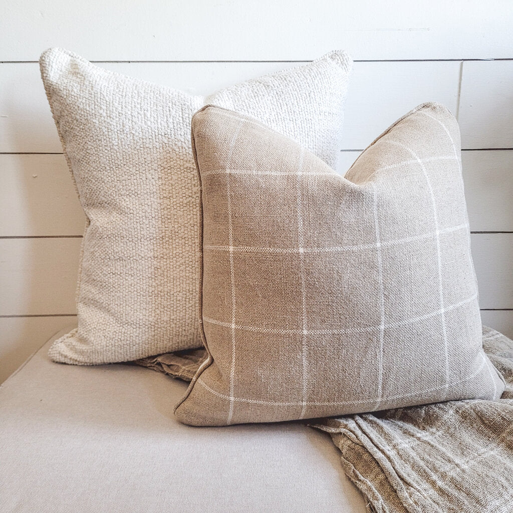 Cover measures 18x18 and is fitted with a zipper closure. Purchase as a complete pillow, with a feather insert and cover, or just a cover, and you can use your own insert. If you do not see the configuration you are looking for online, please give us a call or send a message so we can assist you.